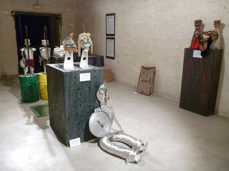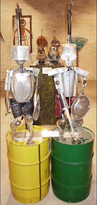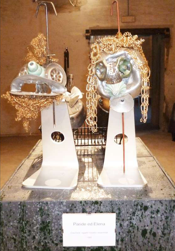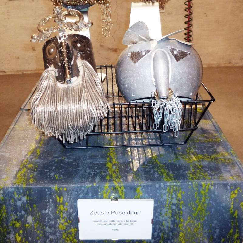 maschere: caffettiera e bollitore assemblati con altri oggetti metallici - 1995