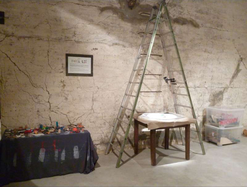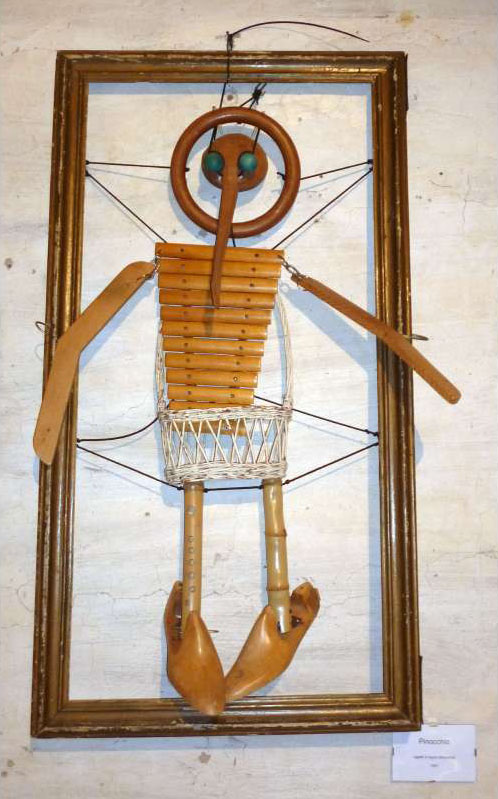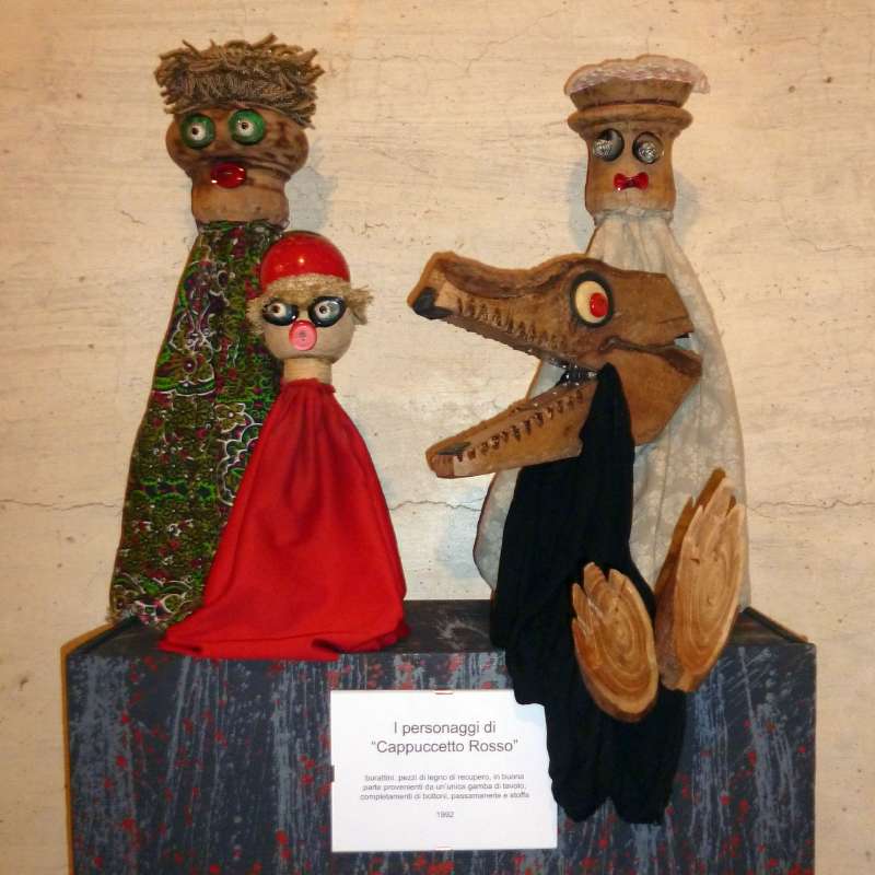 burattini: pezzi di legno di recupero, in buona parte provenienti da un'unica gamba di tavolo. Completamenti di bottoni, passamaneria e stoffa - 1992